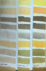Next, I stirred the vat and waited for it to settle. The color of the vat looked good, as well as the surface. The vat was a clear gold color and there was a coppery sheen on top. But the first test sample resulted in barely any color at all! That was a surprise, since I thought there was plenty of indigo in the vat. I thought I had also been “feeding” it with plenty of sugar. The vat had been used very heavily before I went away. I thought that possibly the indigo had finally been exhausted.