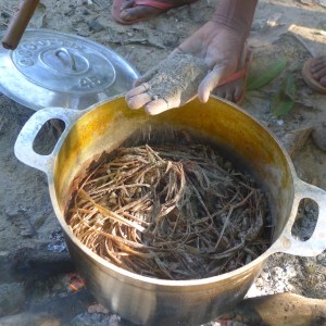 Maybe time is the most valuable resource. The women worked together but their dyeing activity went hand-in-hand with childcare and there were many small children around, observing and participating when appropriate. When everything goes into the pot together the dye process takes less time.