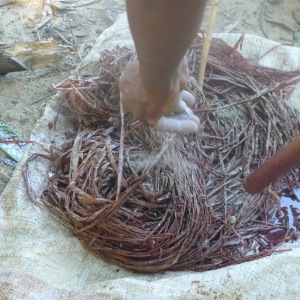 While in Madagascar last month, I watched dyers add bark (the dyestuff), raffia (the textile), and crystalized alum (the mordant), to the dyebath all at the same time. My “professional dye knowledge” told me this was not the best approach. But then I began to think.