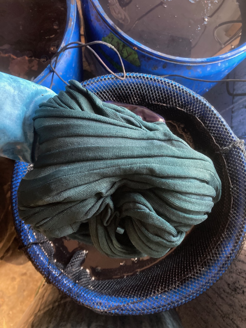These discoveries energized my own work and as I went deeper, I began noticing that many of the plant dyes that are used for the one-bath acid process have also been used as natural hair dyes: henna, madder, alkanet, dock, rhubarb root, cassia leaves (Cassia obovata, also referred to as “neutral” or “colorless” henna). These can all be used successfully for one-bath acid dyes and result in very lightfast colors. Dried Indigofera tinctoria leaves (“black henna”) are also used as a dye for hair and when combined with henna results in a very dark color.