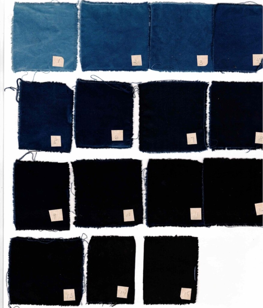 Indigo on cotton cloth, same vat: 1-24 ten-minute dips. February, 2021