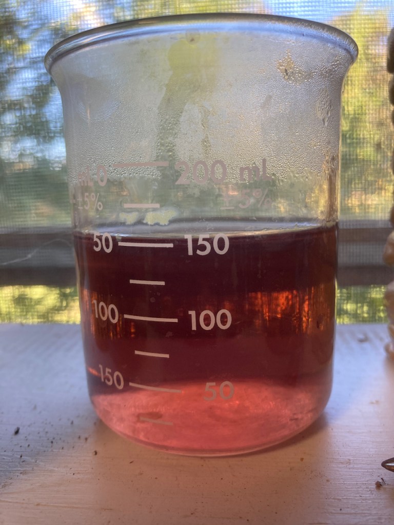Once I started using indigo from Stony Creek I noticed that the water from the final boil was always tinted a purple hue. I assumed this was the indirubin that was being rinsed from the textile. Interestingly, I observed that the purple color in the boil water is temporary, and will disappear as the bath cools.