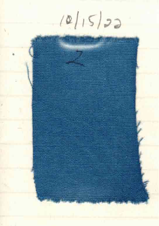 In addition to “numbering” my vats I also “name” them, using a title that is descriptive of the vat itself. This one was name WEF (Weak Ferment). Initially, it did NOT produce the anticipated pale color that I had hoped for. The color was actually quite strong, even though it contained what I considered only a small amount of indigo, compared to the other vats. From this, I concluded that the reduction of the indigo in the fermented vat was much more efficient than in the quick reduction vats.