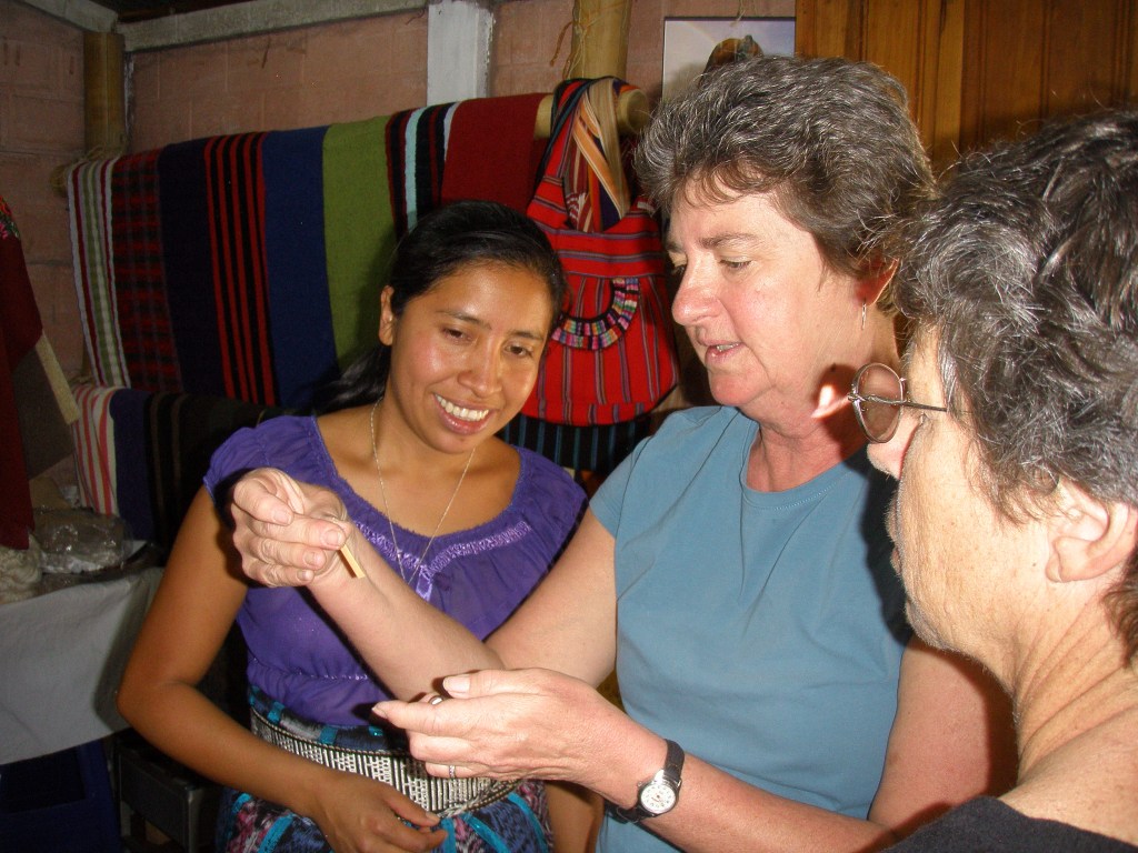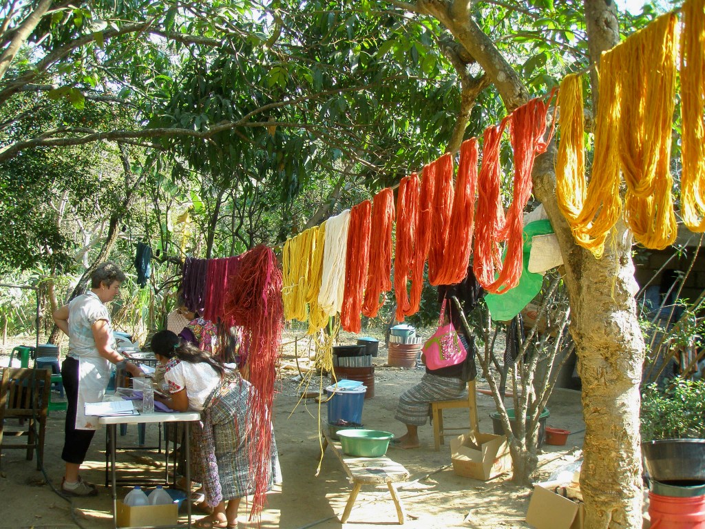In 2013 Donna and I were invited to Guatemala to teach a natural dye workshop, in partnership with Mayan Hands. We taught cotton mordanting processes to a group of women who were skilled back-strap weavers. They were looking to diversify their own work and increase their revenue stream. We were very conscious of demonstrating processes that were sustainable in their remote mountain location. And the colors needed to be bright! We accomplished that!