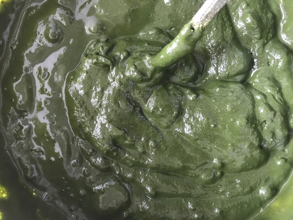 •  If using ground Indigofera tinctoria leaves, stir them into warm water to make a smooth, watery paste.