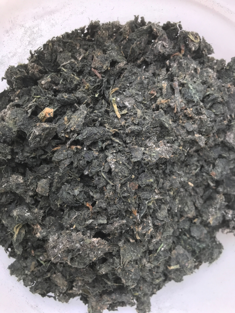 Indigo leaf patties, made from fresh indigo leaves (left). They are dried to preserve (right) and can be added to feed the vat and to boost fermentation. I have used all types of indigo leaves from my garden for this: Persicaria tinctoria, Indigofera suffruticosa, and Isatis tinctoria.