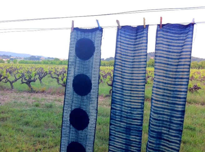 Early indigo dye work with woven shibori. Photographed in Lauris France by Elin Noble