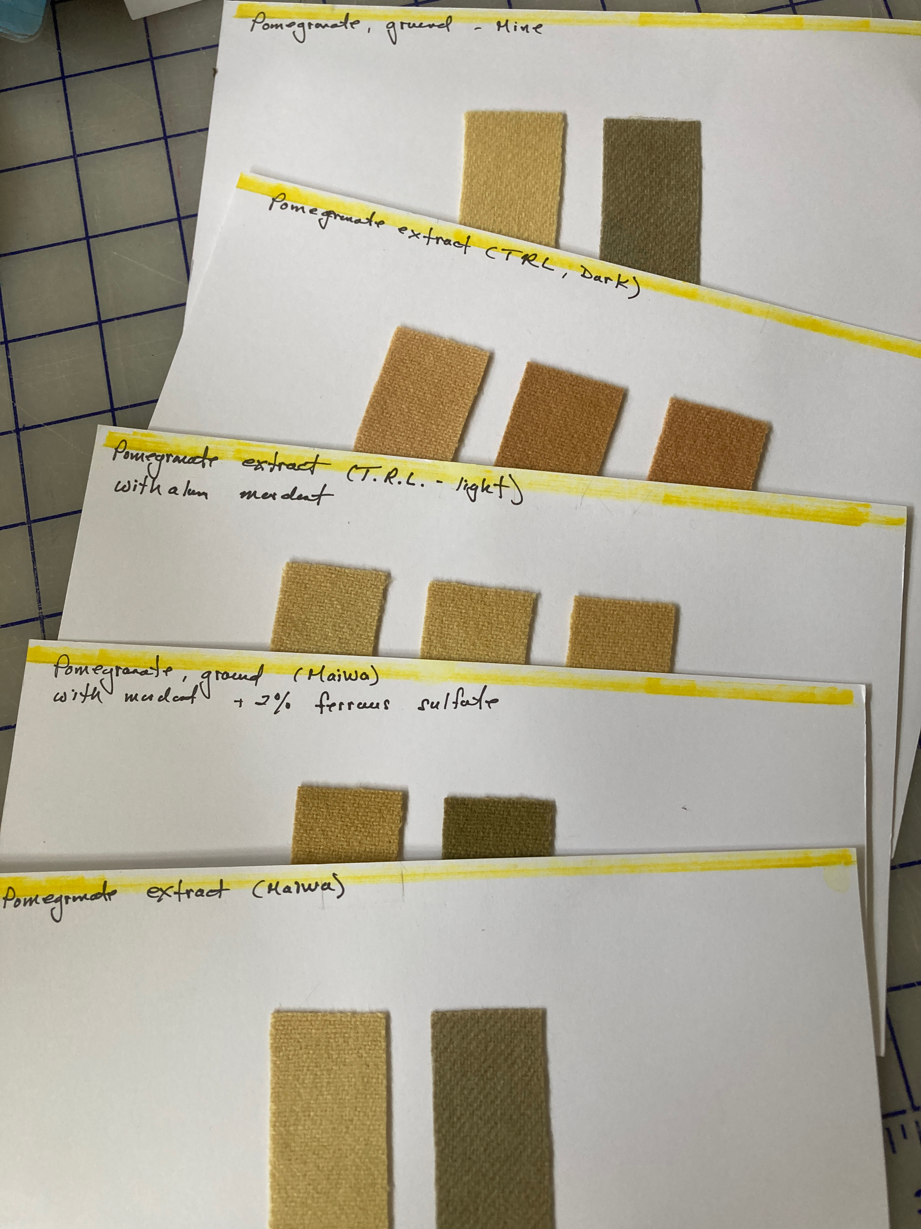In order to truly understand how the process with Green Matters Dye Company plays out, I brought a favorite skirt of my daughters – it WAS pink and stained and thus she never wore it. She had asked me to dye it but I don’t have a pot big enough to even hope to get it dyed well. Green Matters Dye Company sent it back to us transformed, dyed in “rum raisin”, which is a combination of cutch and madder and lightly treated with iron in a “tie dyed” design, in order to further camouflage the original staining. This post dye treatment is an option. Now it’s a skirt that she loves to wear – and it even came with care instructions.